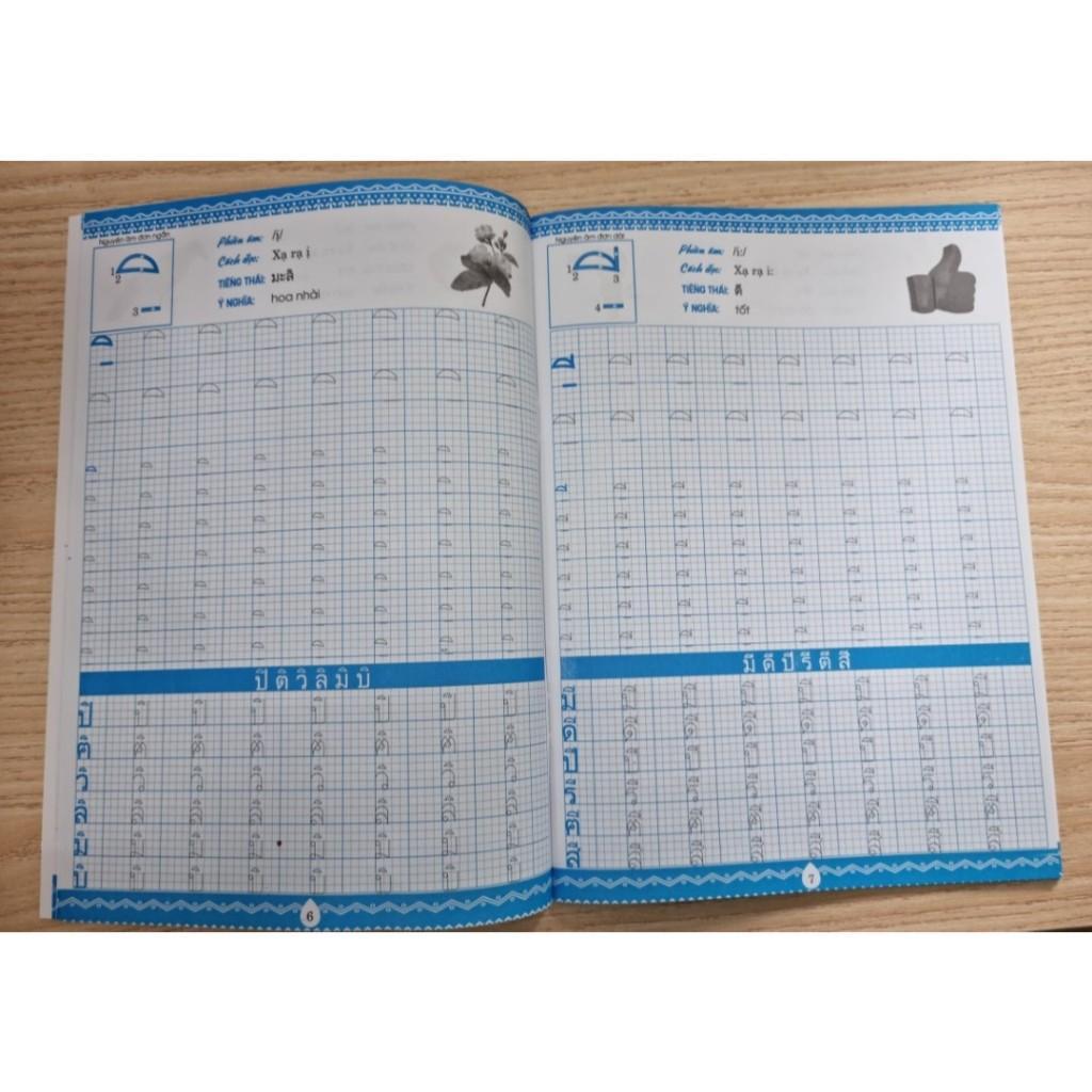 Khi học tiếng Thái hay bất kì ngoại ngữ nào, bên cạnh việc luyện nghe, phát âm, đọc, nói thì viết cũng là một kĩ năng quan trọng mà bạn cần luyện tập. Bởi nó không chỉ giúp bạn ghi nhớ các chữ cái mà còn cho bạn sự tự tin để trình bày các văn bản tiếng Thái một cách thành thạo. Cuốn sách này hướng dẫn bạn luyện viết các chữ cái tiếng Thái, phần Nguyên âm. Mỗi nguyên âm được trình bày cụ thể các nguyên tắc viết cũng như thứ tự viết từng nguyên âm để người học dễ theo dõi và tập viết các nét đúng, đều và đẹp. Tiếng Thái có 32 nguyên âm tạo thành 9 giọng nguyên âm ngắn, 9 giọng nguyên âm dài, 3 hợp âm. Các nguyên âm kép là những nguyên âm có 2 ký tự trở lên, những nguyên âm này có thể ở hai bên của phụ âm. Trong tiếng Thái có 6 nguyên âm ít thường dùng trong tiếng Thái hiện nay.