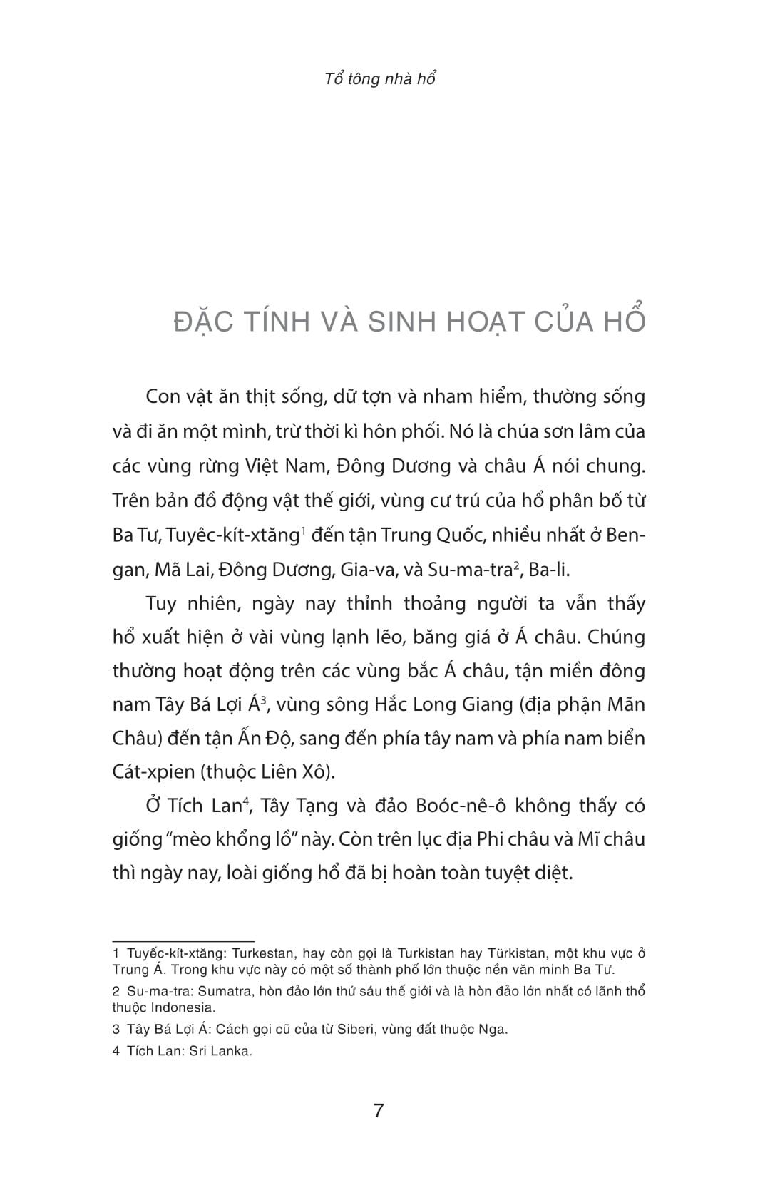 “Điều này hơi bất ngờ, chắc các bạn khó tin, là hổ còn ăn cả quả cây! Hổ rất thích trái sầu riêng. Có lẽ mùi thơm ngạt ngào pha lẫn vị pho-ma của loại trái cây đặc biệt này khiến hổ nhớ mùi thịt ôi mà nó thường thưởng thức. Dân địa phương còn quả quyết họ đã thấy hổ ăn các loại xoài rừng, cả những quả còn xanh, không cần đợi chín.