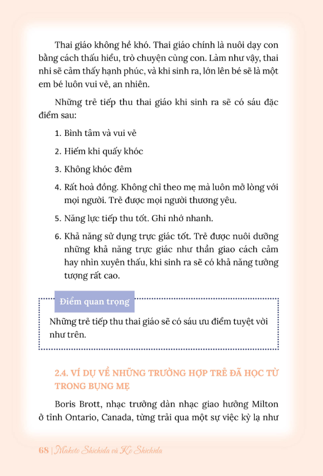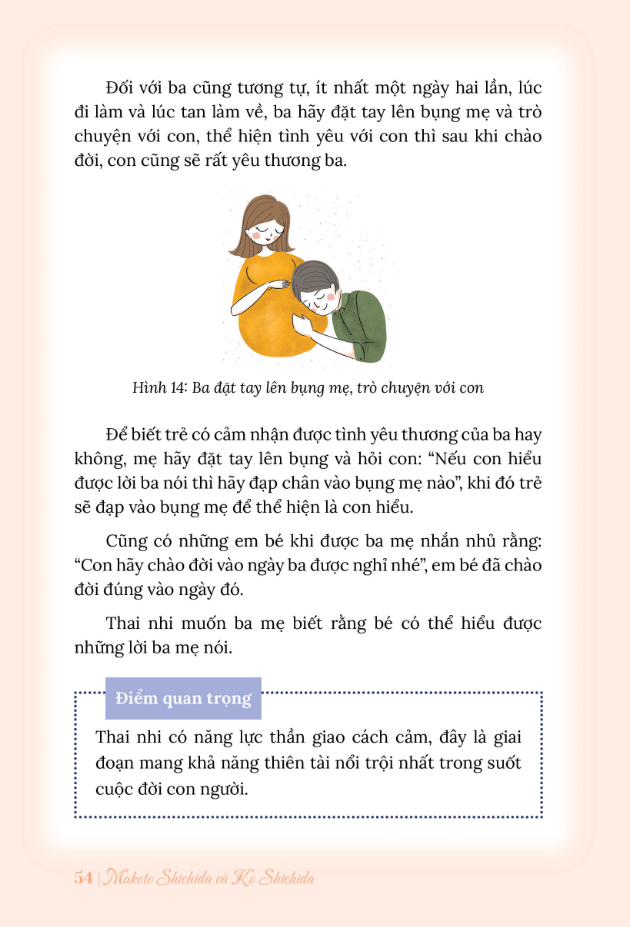 Và hãy nhớ rằng, cơ thể mẹ và bé trong bụng có mối dây liên kết mật thiết. Do đó, những suy nghĩ, cảm xúc của mẹ dù tích cực hay tiêu cực đều được truyền đến con. Ba mẹ hãy nắm rõ những năng lực mà bé sở hữu đã được giới thiệu trong cuốn sách này và tạo ra thật nhiều kích thích cho trẻ từ khi trẻ còn trong bụng mẹ. Những kích thích, tác động từ gia đình và đặc biệt là từ người mẹ sẽ nuôi dưỡng tâm hồn trẻ, phát triển trí não thông minh.