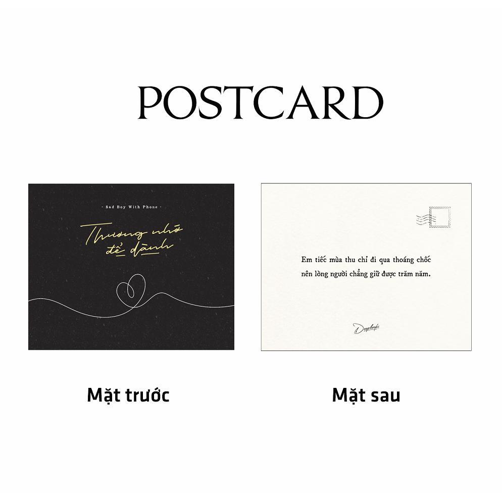 “Thương nhớ để dành” là tác phẩm thứ hai đến từ nhóm tác giả Sad Boy With Phone. Những nhà văn trẻ mượn lời văn, vần thơ để viết về niềm thương dang dở và niềm hạnh phúc nhỏ bé, giúp chữa lành những tâm hồn còn đang đau đớn. Tình yêu dưới góc nhìn của người trẻ được mở ra với nhiều khía cạnh, nhiều cảm xúc khác nhau. Thứ tình cảm đó có sự ngại ngùng của lần đầu chạm mặt, là niềm hạnh phúc vô bờ khi được ở bên người mình thương và có cả những đau đớn khi tình yêu tan vỡ.