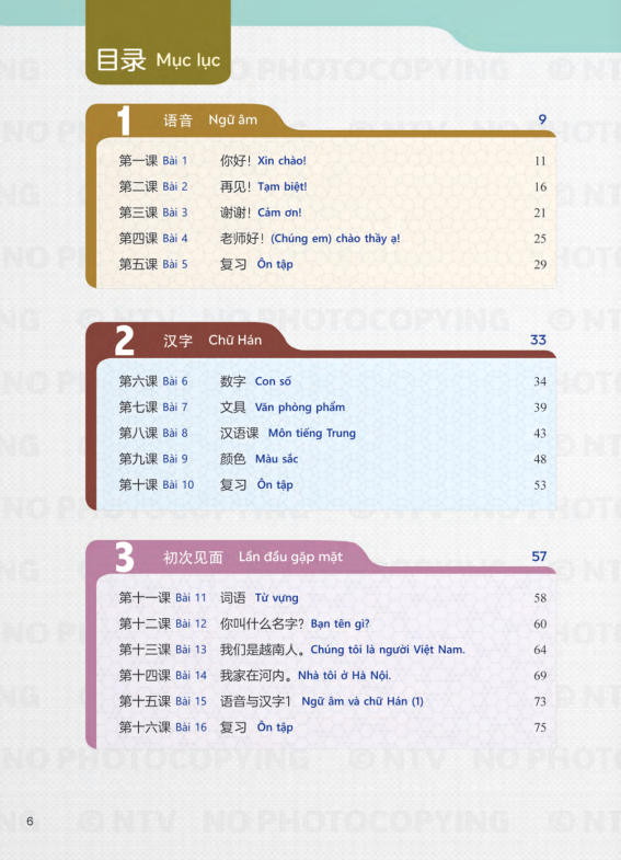 Giáo Trình Hán Ngữ 1 - Tập 1 - Quyển Thượng Các bài học trong “Giáo trình Hán ngữ 1” Tập 1 được thiết kế gồm 5 phần: 1. Bài đọc, 2. Từ mới, 3.