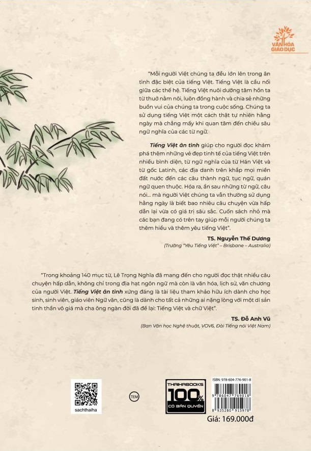 Nhắc đến sự giàu đẹp của tiếng Việt, đa số chúng ta thường chỉ nghĩ đến sáu thanh: sắc, huyền, ngang, hỏi, ngã, nặng - chất liệu khiến “nói nghe như hát”. Thế nhưng khi tìm hiểu sâu hơn, ta mới thấy tiếng Việt còn đẹp vô cùng bởi cách dùng từ, bởi sự vận dụng linh hoạt những từ mượn; bởi các câu tục ngữ, ca dao; bởi tên địa danh, tên món ăn, đồ uốĐó là những tinh hoa đã được ông cha đúc kết lại trong suốt mấy ngàn năm lịch sử mà chỉ cần lần dở lại những trang sách ngày xưa, ta sẽ thấy ngay cả một kho tàng. Tiếc rằng vì nhiều lý do khách quan mà với đa số mọi người, kho tàng vô giá kia vẫn còn ẩn hiện sau lớp sương mờ, chỉ những ai hữu duyên mới có cơ may khám phá. Song song với đó là sự phổ biến của mạng xã hội và nhu cầu học ngoại ngữ, tuy có nhiều tác động tích cực nhưng cũng kèm theo nhiều mặt trái, khiến một bộ phận các bạn trẻ yêu thích và ưa chuộng tiếng nước ngoài hơn khi chưa kịp hiểu rõ cái hay, cái đẹp của ngôn ngữ quê nhà. Đây là một hệ quả tất yếu của quá trình hội nhập , và mọi chỉ trích, lên án đều không phải là giải pháp hữu ích, dài lâu.