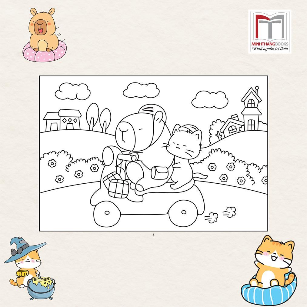 Săch tô màu Capybara và Mèo Cam
