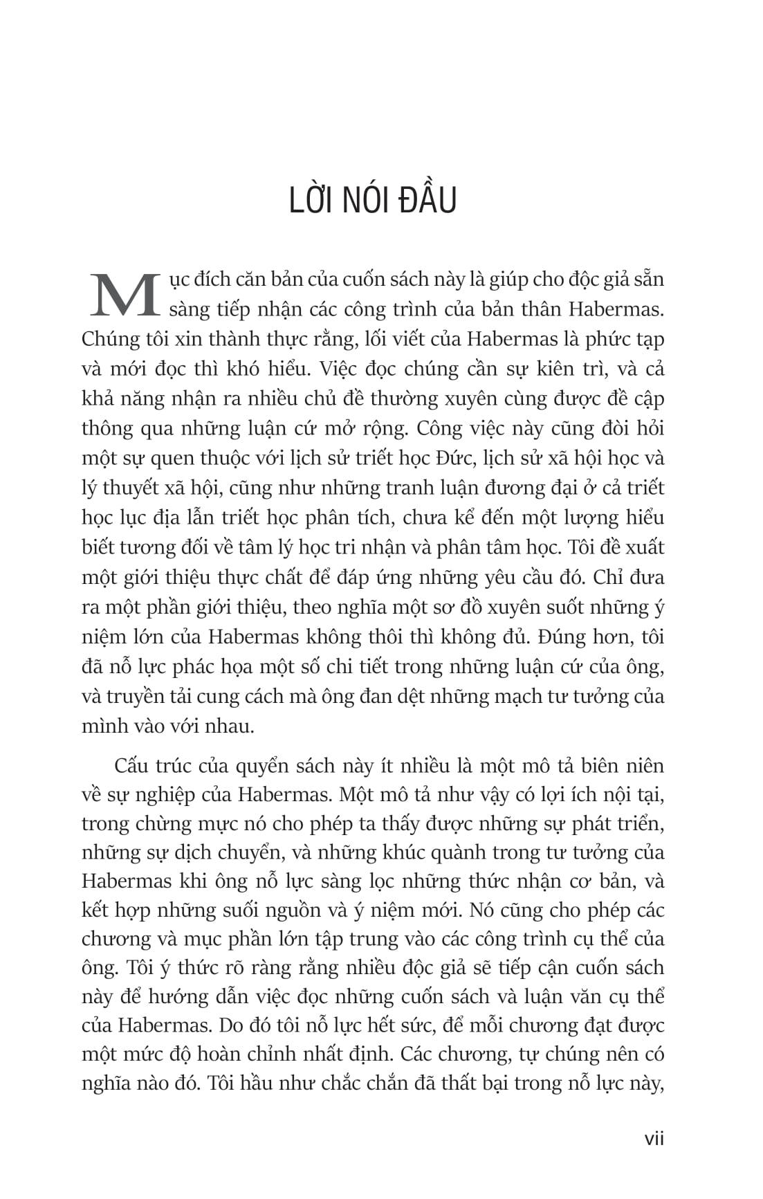 Cuốn sách giới thiệu sự ra đời và phát triển của hầu như toàn bộ những vấn đề then chốt của Habermas: Không gian công cộng, Ý niệm về Lý thuyết Phê Phán, khủng hoảng về sự chính đáng hóa, lý thuyết về hành động tương giao/ngôn giao, đạo đức học diễn ngôn, thuyết dụng học phổ quát, sự thuộc địa hóa và giải thuộc địa hóa trong mối quan hệ giữa hệ thống và thế giới đời sống, tính hiện đại, luật pháp và nền dân chủ… Từ đó, khẳng định vai trò của triết học như là “kẻ giữ chỗ” và “nhà diễn giải”, giữ vững chức năng phê phán và vai trò của “người trí thức công cộng”, người khai thác những nguồn lực của không gian công cộng để thách thức sự thuộc địa hóa thế giới đời sống.