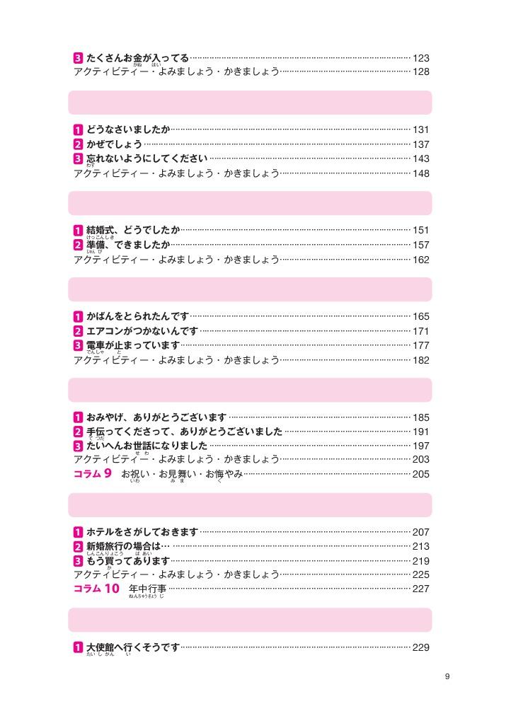 Giáo trình bao gồm 2 sách giáo khoa sơ cấp 1, 2, hai quyển Work book sơ cấp 1,2 và 1 quyển Bản dịch và giải thích ngữ pháp.