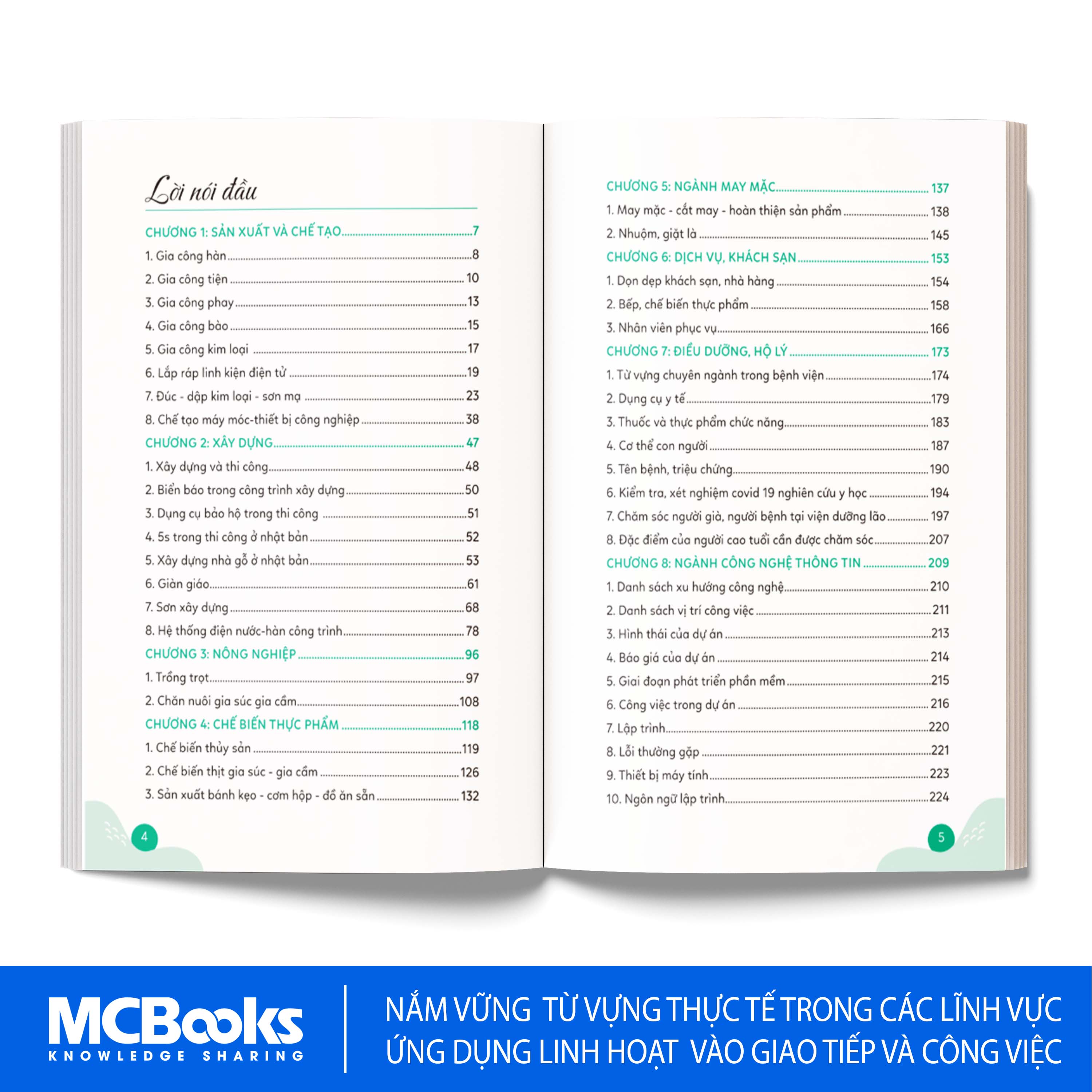 Phân chia theo từng chủ đề từ vựng gắn liền với môi trường công việc thực tế, giúp người học dễ dàng tra cứu và áp dụng ngay trong công việc hằng ngày. Cụ thể, sách gồm 8 chương theo nhóm từ vựng chuyên ngành như sau: