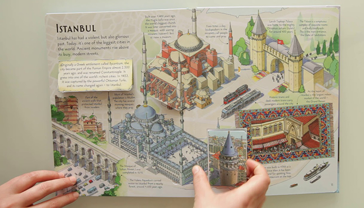 Explore soaring skyscrapers, elegant cathedrals and bustling shopping streets – and discover fascinating facts and details beneath the flaps.