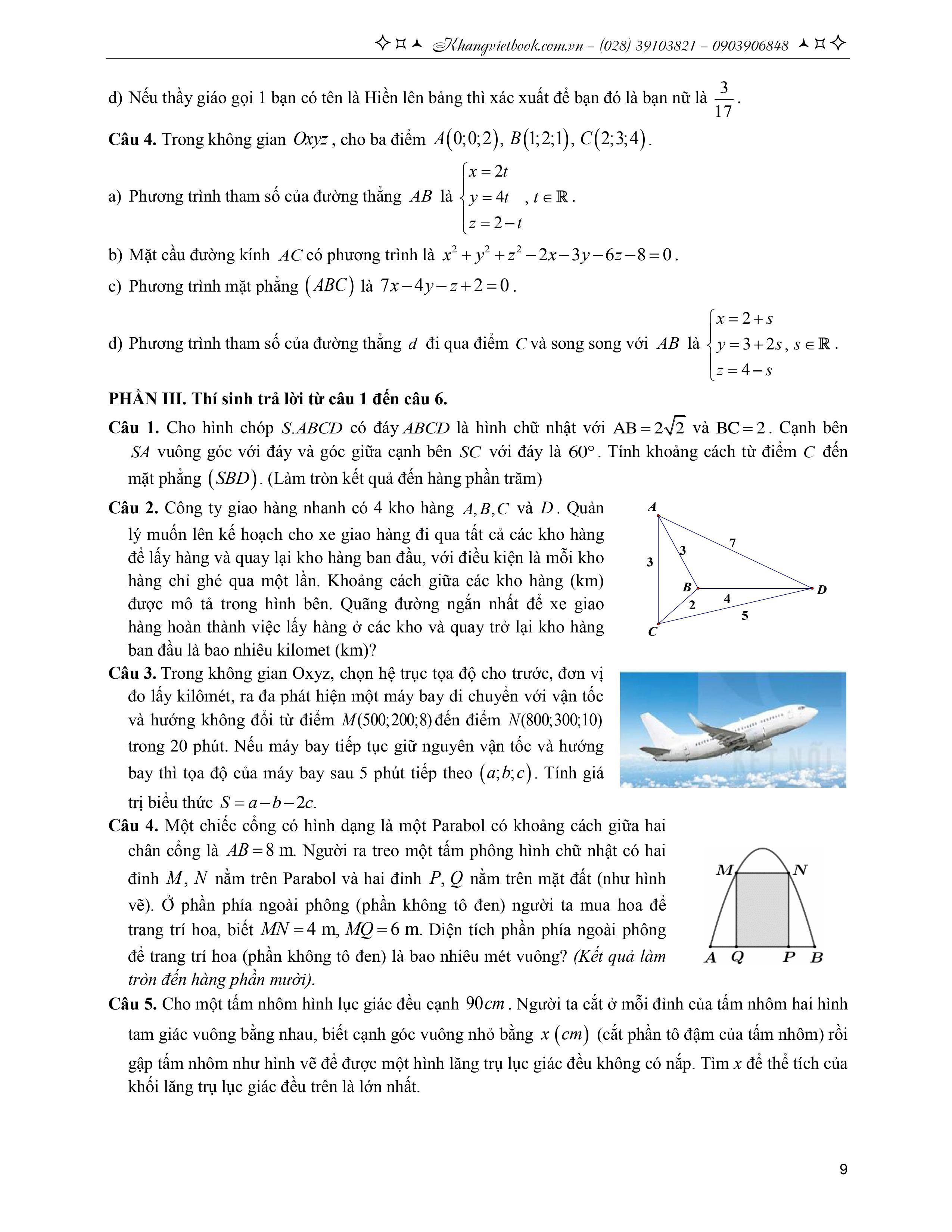 Phần III. Trả lời ngắn.
