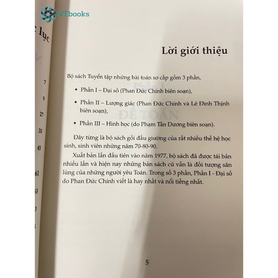 Mua tại TiktokĐây từng là bộ sách gối đầu giường của rất nhiêù các bạn học sinh, sinh viên vào những năm 70-80-90, bộ sách đã được tái bản nhiều lần và hiện nay những bản sách cũ vẫn là đối tượng săn lùng của những người yêu Toán. Sách tổng hợp các đề toán về Đại số do Phan Đức Chính viết là hay và nổi tiếng nhất. Nội dung gồm có: