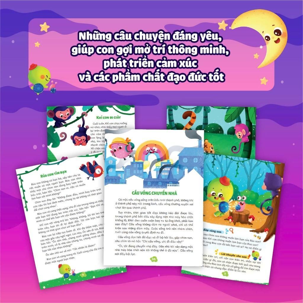 - Phát triển trí thông minh: Các câu chuyện được chọn lọc kỹ lưỡng không chỉ giải trí mà còn kích thích tư duy và khả năng tưởng tượng của trẻ. Các bài học ngầm chứa trong từng trang sách giúp bé học hỏi những giá trị cuộc sống và phát triển cảm xúc cũng như tư duy phản biện từ sớm.