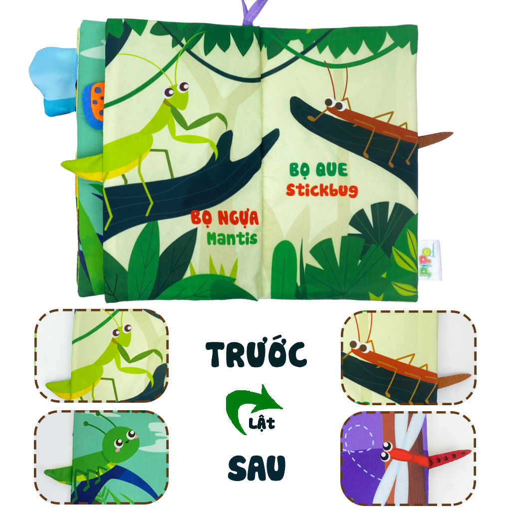 ✨Sách Vải Tương Tác Cho Bé Đoán Đuôi Con Vật - Thế Giới Côn Trùng