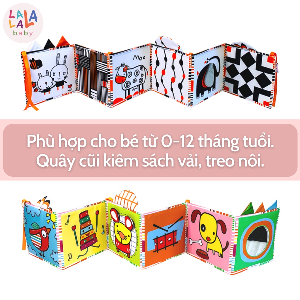 Tranh Vải Kích Thích Thị Giác Cho Bé Sơ Sinh, Phát Triển Não Bộ Tummy Time - Lalala Baby Sách vải lật mở đa tương tác Lalala baby, made in Việt Nam - Chất liêu: