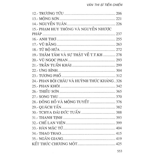 Tác phẩm này không phải là một văn học sử, cũng không phải một công trình khảo luận. Đây là chứng dẫn một thời đại, của một người đã bước trong lịch trình hăng say của Thế hệ văn học cận kim, đã lăn lóc hàng ngày với các bạn đồng hành. Nó đã sống, đã thấy, đã cảm xúc giữa một thế giới mới đột nhiên xuất hiện từ một thế giới cũ. Nó đã chia sẻ những vinh nhục của số kiếp con nhà văn.