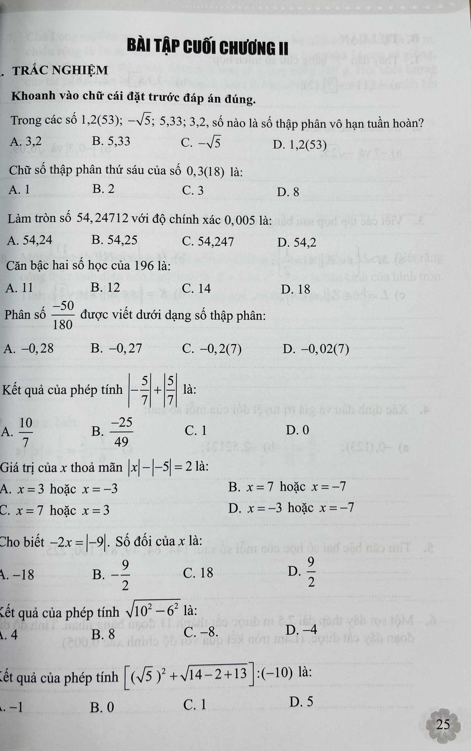 SÁCH BÀI TẬP - Toán 7 (Trang 10) | BÀI 2: CÁC PHÉP TÍNH VỚI SỐ HỮU TỈ (Chân Trời Sáng Tạo)
