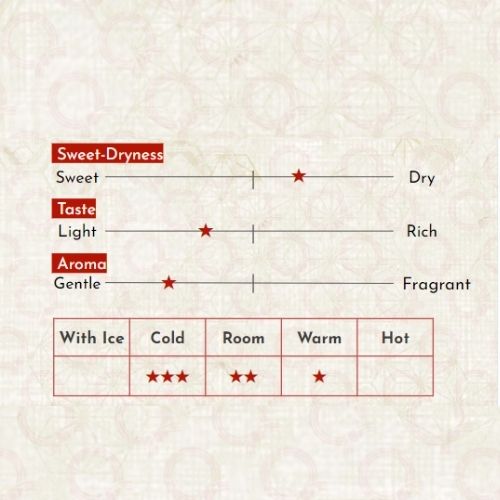 Chorou Tan Junmai Ginjo Với hương vị mịn, nhẹ. Rượu sake `` Chourou Tan '' được làm hoàn toàn từ gạo, nước, nhà máy rượu sake và nhà sản xuất bia của Kyotanba, đồng thời được làm bằng gạo sake Gohyakumangoku được sản xuất ở Kyotanba và nước từ Kyotanba. Đây thực sự là loại rượu sake do Kyotanba sản xuất, được ủ cẩn thận bằng tất cả đam mê bởi nhà sản xuất rượu sake trẻ tuổi của nhà máy rượu sake duy nhất của Kyotanba Chourou Shuzou. Dòng sake: Junmai Ginjo. Gạo dùng: Kyotanba Tỉ lệ đánh bóng gạo: 55% Nồng độ cồn: 15% - 16% Tỉ lệ axit: Sake Meter Value (SMV): Thành phần: gạo (sản xuất trong nước), men gạo (gạo sản xuất trong nước) Thể tích: 720ml. Lưu ý: Trên 20 tuổi mới được phép dùng. Phụ nữ có thai hoặc cho con bú nên hạn chế sử dụng. Pháp luật nghiêm cấm lái xe sau khi uống. Bảo quản nơi mát lạnh, tránh ánh nắng trực tiếp. Để đảm bảo chất lượng sake nên bảo quản trong ngăn mát tủ lạnh khi không dùng hết. NSX: : Chourou Shuzo Co., Ltd. NK&PP: Công ty TNHH Starmark Vietnam Xuất xứ: Nhật Bản
