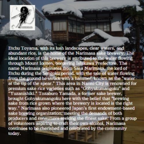 Sasa Narimasa Yamada - Nishiki Junmai Ginjoshu Loại Sake Junmai Ginjo được làm từ gạo Yamada Nishiki loại gạo thượng hạn được trồng cho việc nấu rượu sake ở thành phố Nanto Nhật Bản. Sasa