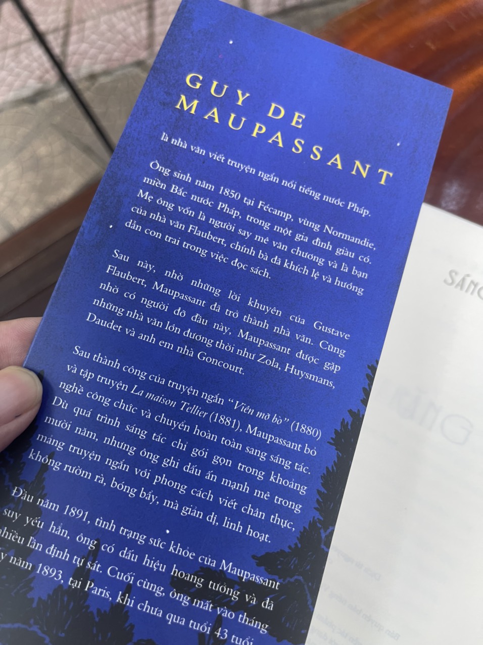 Guy De Maupassant là nhà văn viết truyện ngắn nổi tiếng nước Pháp. Ông sinh năm 1850 tại Fécamp, vùng Normandie, miền Bắc nước Pháp, trong một gia đình giàu có. Mẹ ông vốn là người say mê văn chương và là bạn của nhà văn Flaubert, chính bà đã khích lệ và hướng dẫn con trai trong việc đọc sách.