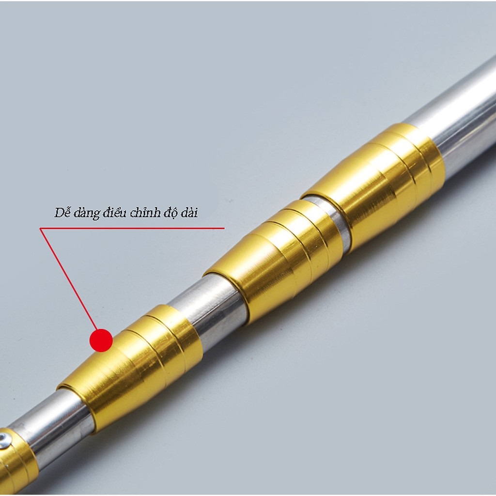 - Phần gậy có thể điều chỉnh kích cỡ với độ dài tối đa là 3/5/6/7m, thuận tiện cho người sử dụng, bạn nên chọn mua loại gậy phù hợp với nhu cầu sử dụng.