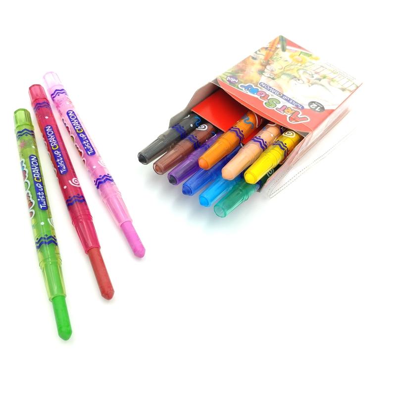 - Mỗi cây màu có kích thước vừa với tay của bé, giúp bé cầm nắm và tô màu dễ dàng hơn. - Bút sáp vặn được thiết kế rất tiện ích với dạng sáp