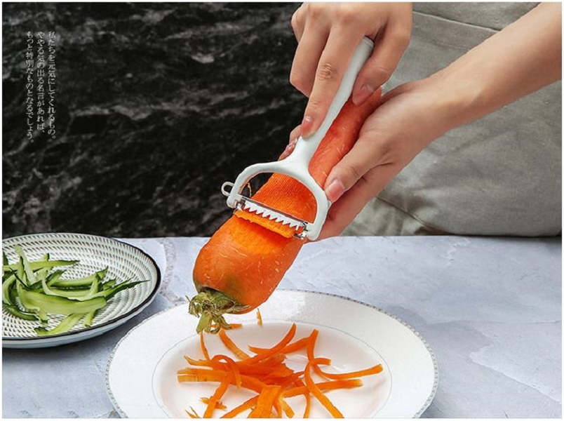 Công dụng: Phần lưỡi dao sắc bén nên loại bỏ vỏ của rau-củ-quả một cách nhanh chóng, mượt mà và rất đẹp mắt, không bị đứt đoạn.