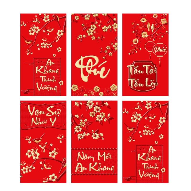 ✨Set 6 phong bao lì xì tết đỏ thắm, chất đẹp, phong cách truyền thống (giao mẫu ngẫu nhiên)