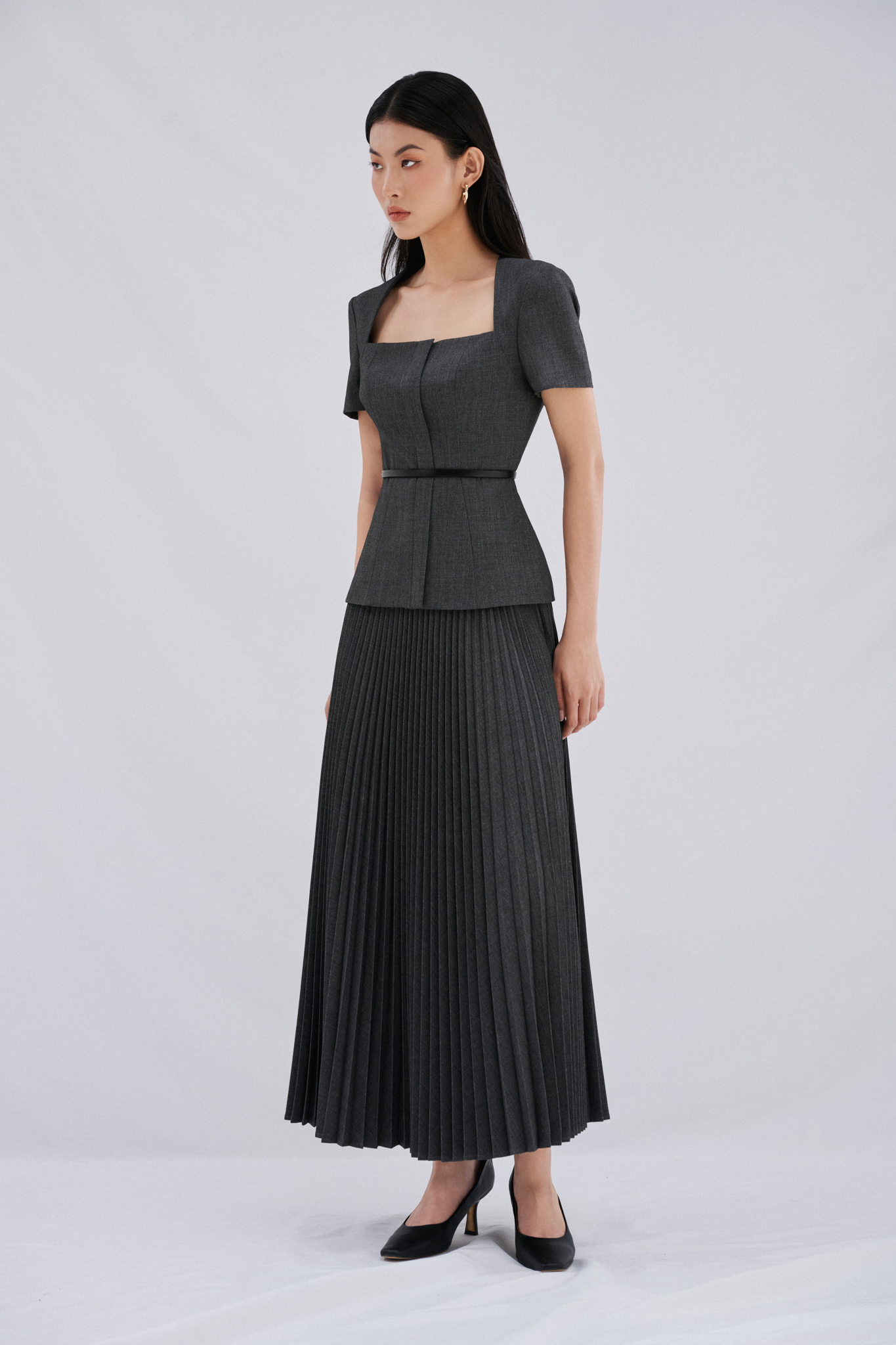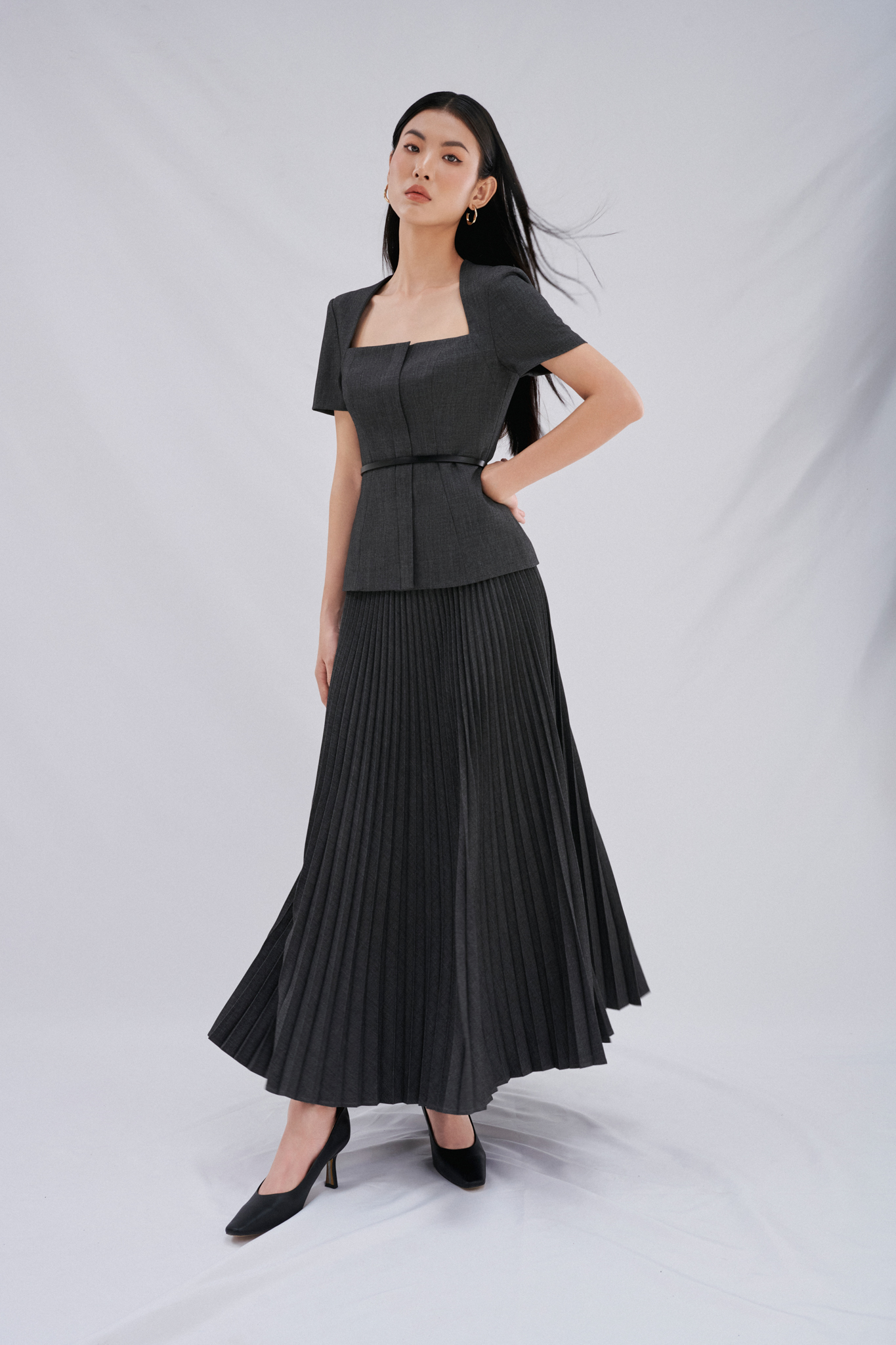 Mua tại Tiktok- Thông tin sản phẩm Daria Set với áo cổ vuông thiết kế phần cúp ngực cách điệu tạo nên nét quyến rũ đầy sức hút. Áo kiểu tay ngắn, cổ hình thang, hàng dây kéo ẩn sau lớp nẹp thân trước. Chân váy xếp ly được thiết kế tỉ mỉ, chỉn chu tới từng đường nét. Daria Top và Daria Skirt không chỉ là bộ trang phục mang đậm vẻ đẹp trung tính, mà thiết kế này còn làm trái tim các Quý cô xao xuyến bởi sự sang trọng và thanh lịch.