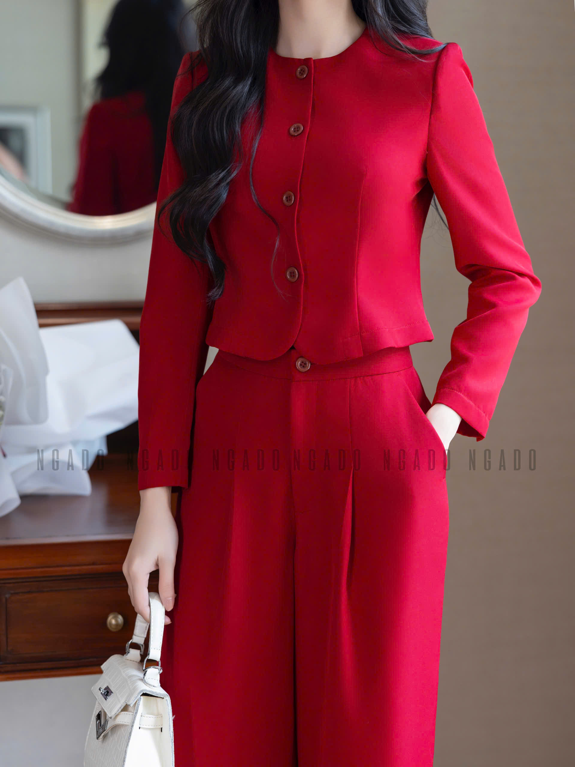 ✨Set áo quần đỏ đô cổ tròn NGADO , set áo quần dài , set công sở , dạo phố