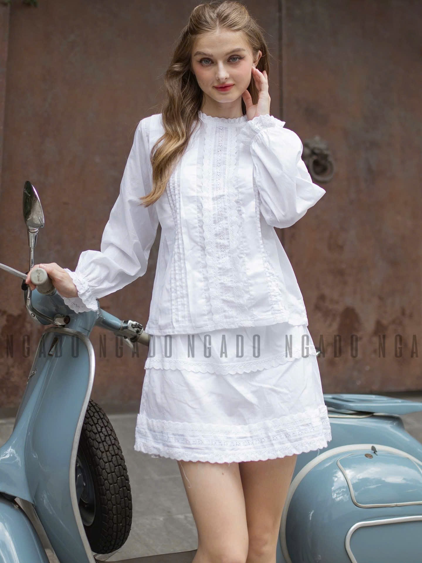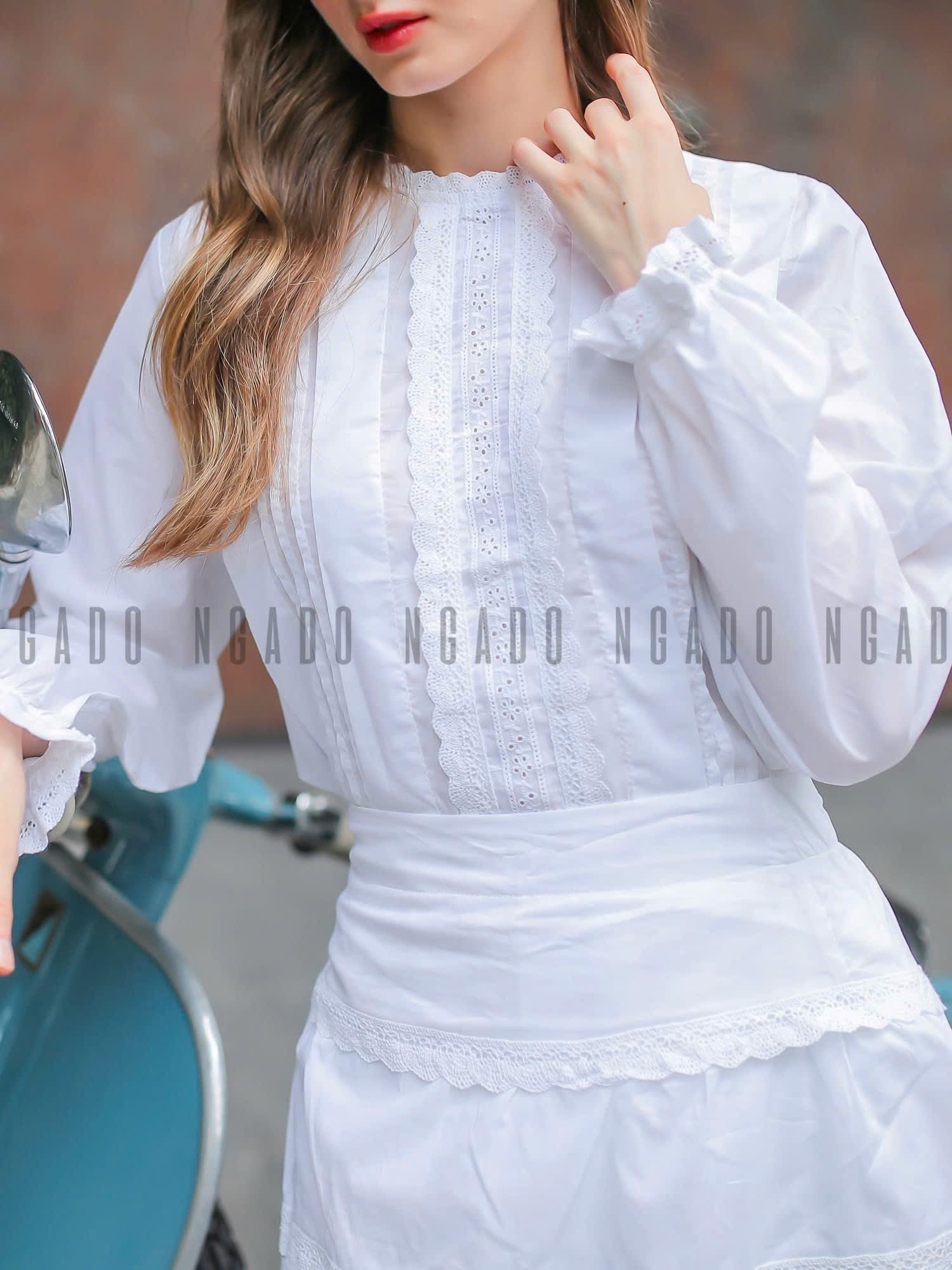 ✨Set áo váy trắng phối ren NGADO , set áo váy trắng , set áo váy nữ