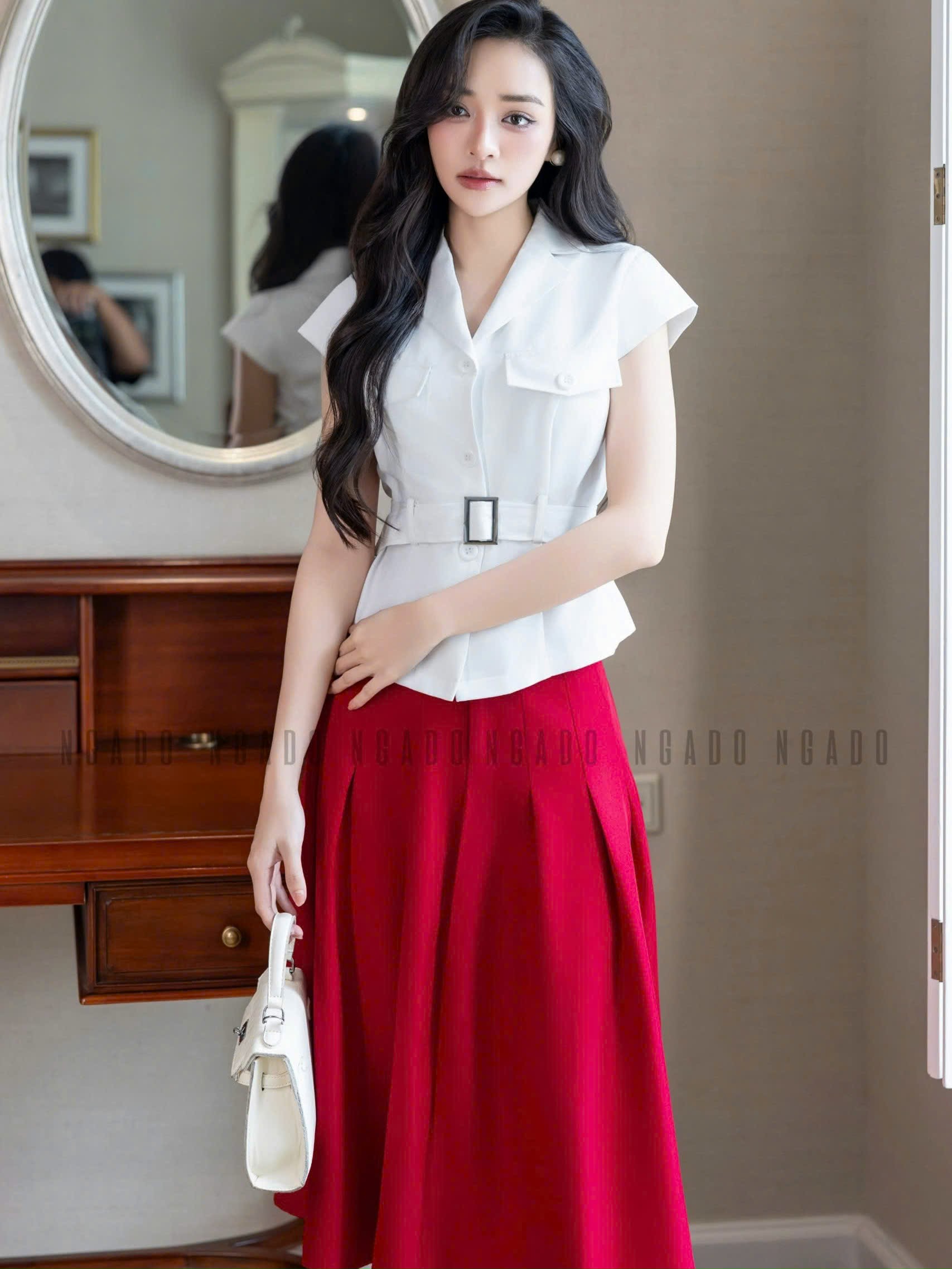✨Set áo váy vest trắng đỏ NGADO , set áo váy vest , set công sở