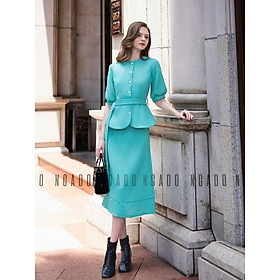 ✨Set áo váy xanh ngọc tay lửng NGADO , set áo váy dài , set công sở, dự tiệc