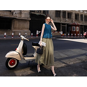 ✨Set áo váy xanh xếp ly NGADO , set áo váy kiểu Nữ , set áo váy dài