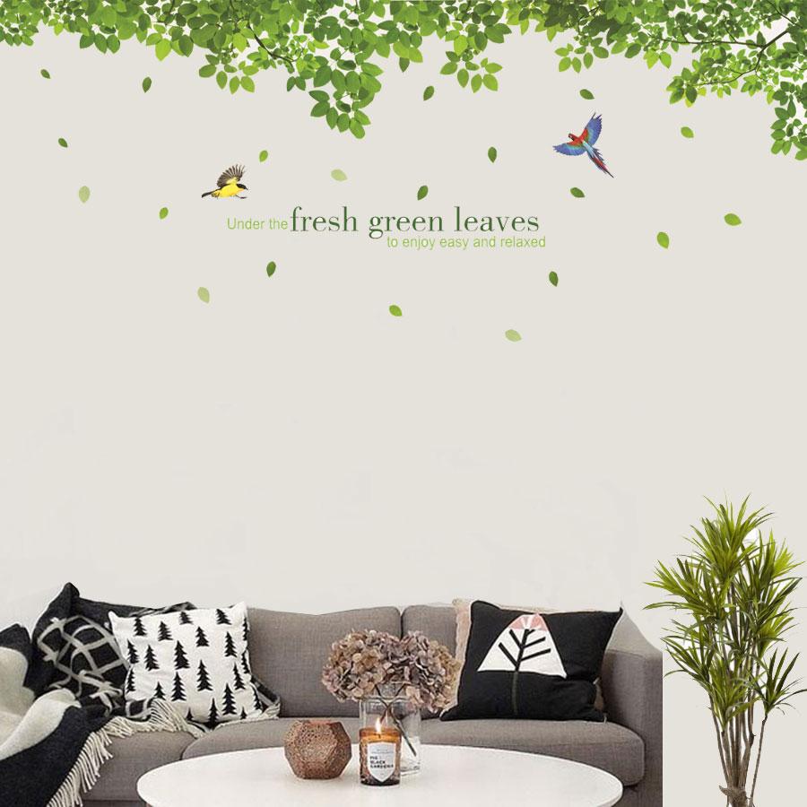 ✨[ Size Lớn ] Decal dán tường kết hợp Lá xanh - Bụi Tre và Sen AM9104+0779C+XY1097AB