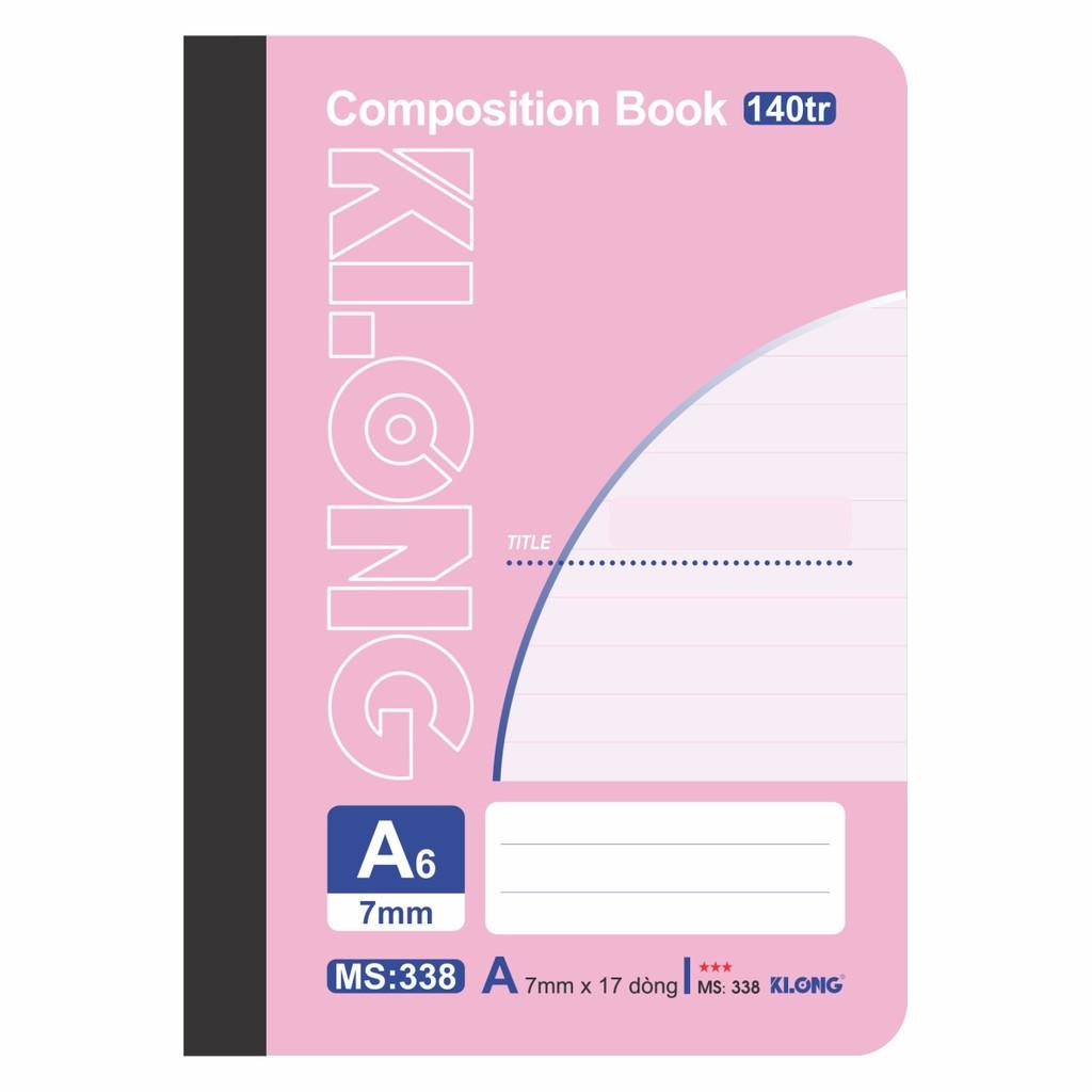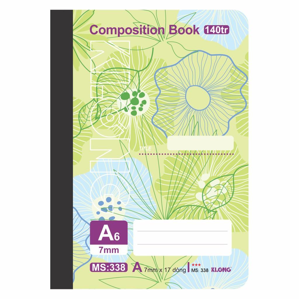Sổ kẻ ngang may dán gáy Composition book KLONG A6 140 trang 58/92; MS: 338 - Định lượng: 58 g/m2 - Độ trắng: 92 %ISO - Số trang: 140 trang - Kích thước: (105 x