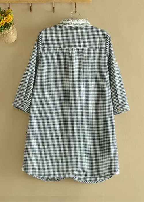 Mấu áo sơ mi tay dài kẻ sọc caro cho nữ