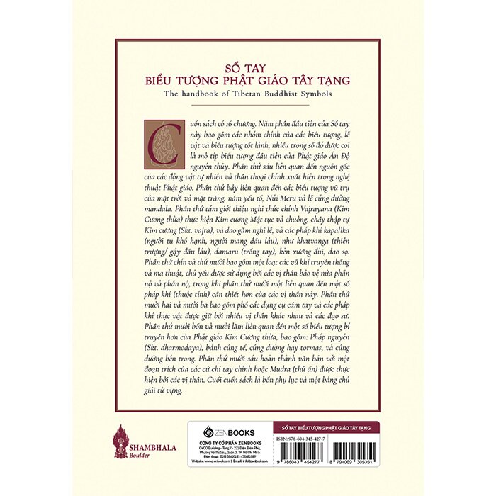 Cuốn sách Sổ Tay Biểu Tượng Phật Giáo Tây Tạng có 16 chương và 4 phụ lục, cùng một bản từ vựng.