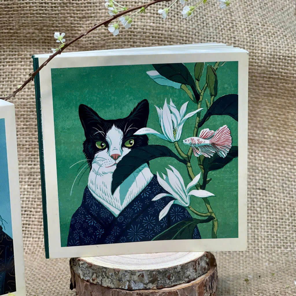 Minh họa bìa độc đáo – Hình ảnh mèo và hoa mang phong cách nghệ thuật, không chỉ đẹp mắt mà còn truyền cảm hứng.