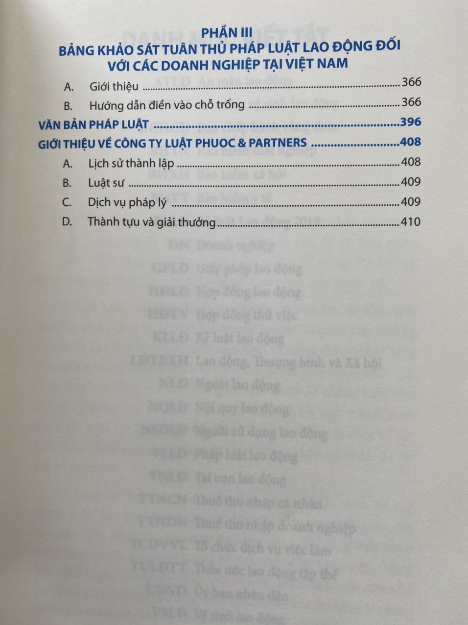Sổ Tay Pháp Luật Lao Độngđược biên soạn dành cho những người trực tiếp làm công tác nhân sự trong doanh nghiệp (ví dụ như giám đốc, trưởng, phó và nhân viên phòng nhân sự) và những người thực hiện gián tiếp các công tác nhân sự (ví dụ như ban giám đốc doanh nghiệp, luật sư nội bộ) cũng như các luật sư đang hành nghề tại các tổ chức hành nghề luật sư. Sinh viên mà có học môn Luật lao động ở các trường đại học cũng có thể tham khảo Sổ tay này. Sổ tay pháp luật lao động này được biên soạn với mong muốn của tác giả là cung cấp những thông tin chính yếu, có tính chất tóm lược và theo một trật tự nhất định dễ theo dõi các quy định của pháp luật lao động Việt Nam. Bên cạnh đó, cuốn Sổ tay này cũng làm rõ một số điểm còn mơ hồ, chưa rõ của các quy định này qua việc phân tích pháp lý và tham khảo ý kiến hướng dẫn của các cơ quan lao động của Việt Nam. Thêm vào đó, Sổ tay cũng liệt kê các yêu cầu báo cáo theo quy định của pháp luật lao động ở từng thời kỳ trong năm mà doanh nghiệp cần theo dõi để thực hiện theo cũng như cung cấp các biểu mẫu báo cáo và các biểu mẫu nhân sự cần thiết khác mà quy định của pháp luật lao động yêu cầu và có cung cấp biểu mẫu hay không cung cấp biểu mẫu. Sổ tay cũng cung cấp lưu đồ (flowchart) các quy trình thực hiện các thủ tục quan trọng có liên quan đến pháp luật lao động trong phạm vi doanh nghiệp. Mong rằng cuốn Sổ Tay Pháp Luật Lao Động này sẽ hữu ích nhiều cho công việc hàng ngày của bạn đọc nói chung và các anh, chị làm công tác nhân sự trong doanh nghiệp nói riêng.
