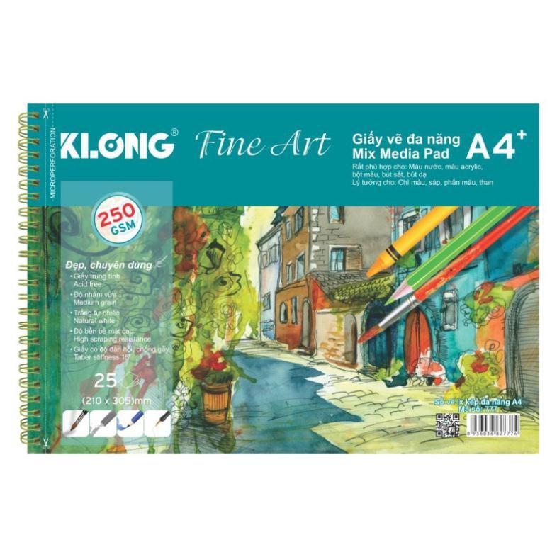 ✨Sổ vẽ KLONG A4+ cao cấp lò xo kép xé 250GSM 25 tờ MS777