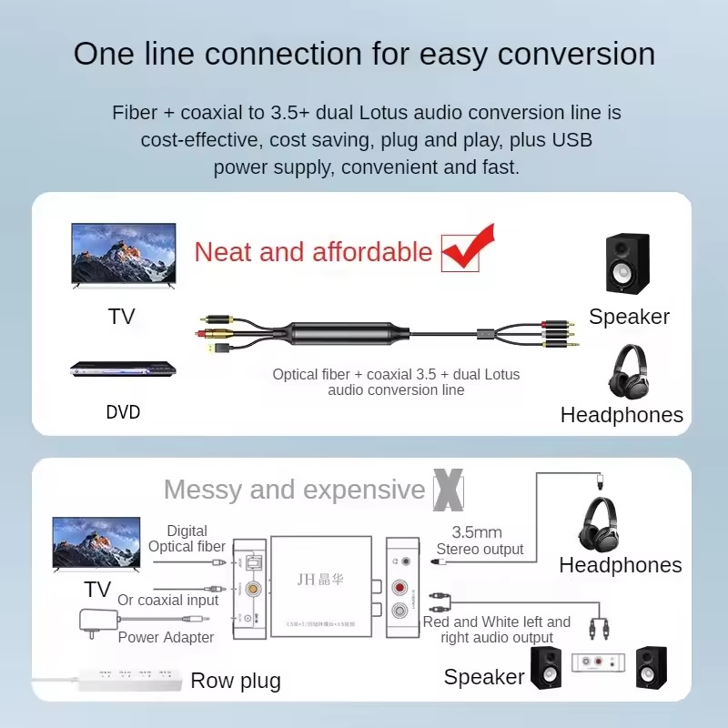 Mua tại TiktokThông tin sản phẩm: ️Model: z239e ️Chiều dài cáp: 1m5 ️Input (dvd, tivi) thiết bị phát: SPDIF/ cổng quang hoặc Coxial đồng trục ---> chỉ dùng 1 trong 2 ngõ ️Output (loa, amply, tivi có ngõ vào): 3.5mm AUX hoặc RCA (đỏ trắng) --------> chỉ dùng 1 trong 2 ngõ ️Usb: Lấy nguồn 5v1a hoặc 5v2a ️Kết nối và sử dụng, không cần cài đặt ️Cáp dùng rất tiện lợi, không rườm rà