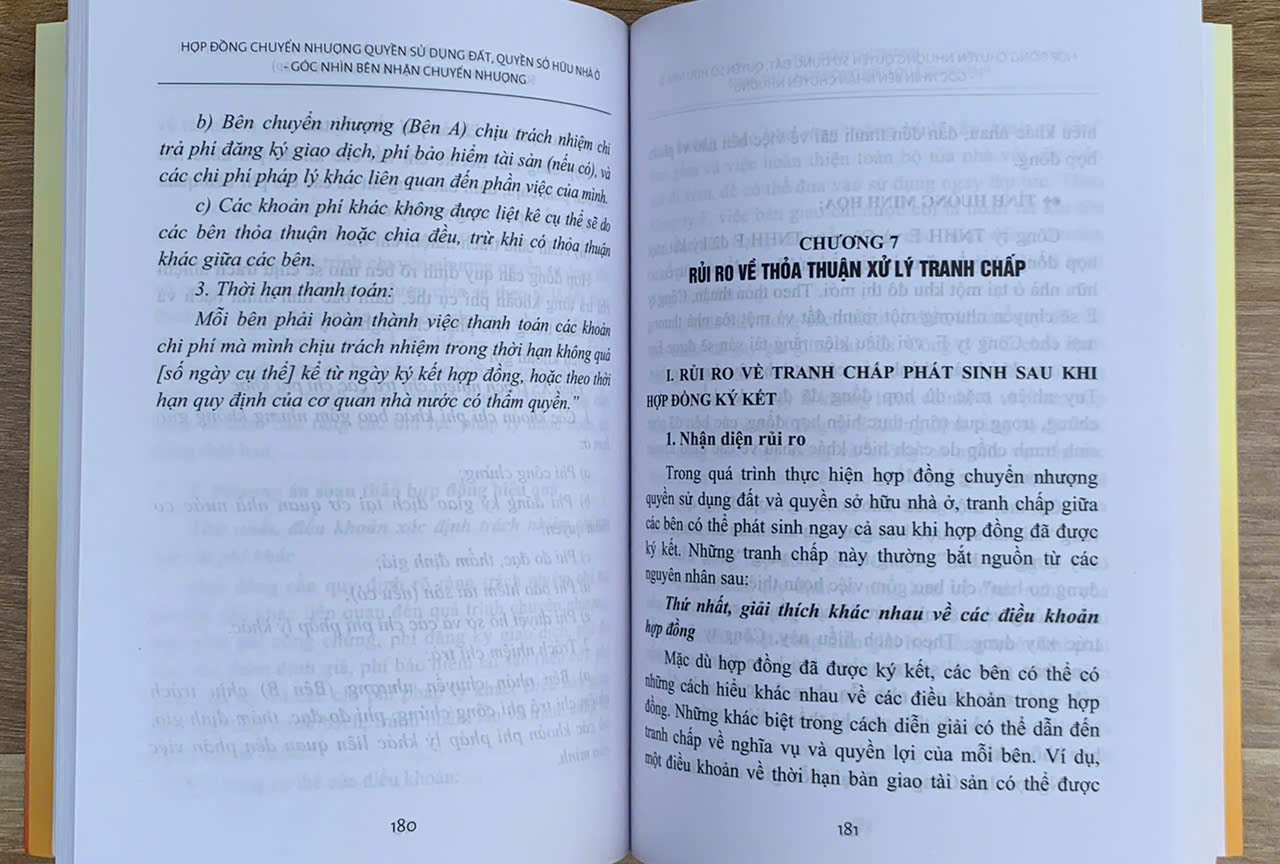Trong bối cảnh thị trường bất động sản ngày càng phức tạp và biến động, việc chuyển nhượng quyền sử dụng đất và quyền sở hữu nhà ở luôn tiềm ẩn nhiều rủi ro pháp lý. Sự hiểu biết sâu sắc về các quy định pháp luật và khả năng soạn thảo hợp đồng chính xác là yếu tố then chốt để bảo vệ quyền lợi của các bên tham gia, đồng thời đảm bảo rằng giao dịch diễn ra suôn sẻ và hợp pháp. Một hợp đồng được soạn thảo kỹ lưỡng không chỉ là một công cụ pháp lý quan trọng mà còn là nền tảng để ngăn ngừa rủi ro và bảo vệ quyền lợi của người nhận chuyển nhượng. n sự mỗi nối thành sign tôn ba Cuốn sách này là một phần trong tuyển tập “Soạn thảo hợp đồng hiệu quả”, mỗi tập sẽ phân tích sâu về một loại hợp đồng cụ thể nhằm mang lại cho người đọc cái nhìn toàn diện và chi tiết nhất. Tập đầu tiên, với tiêu đề “Hợp đồng chuyển nhượng quyền sử dụng đất, quyền sở hữu nhà ở - góc nhìn bên nhận chuyển nhượng”, đi sâu vào việc nhận diện và phân tích các rủi ro pháp lý phổ biến trong quá trình chuyển nhượng. Thông qua việc cung cấp các giải pháp soạn thảo cụ thế, cuốn sách hướng đến việc giúp người đọc phòng ngừa rủi ro và bảo vệ quyền lợi của mình một cách hiệu quả.