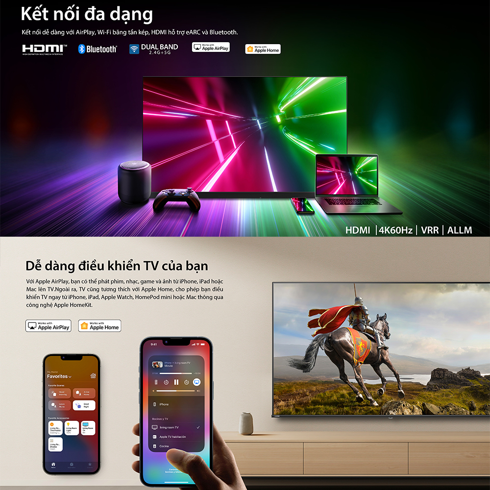 - Chia sẽ thông minh: Airplay 2, DLNA, Miracast, Content sharing
