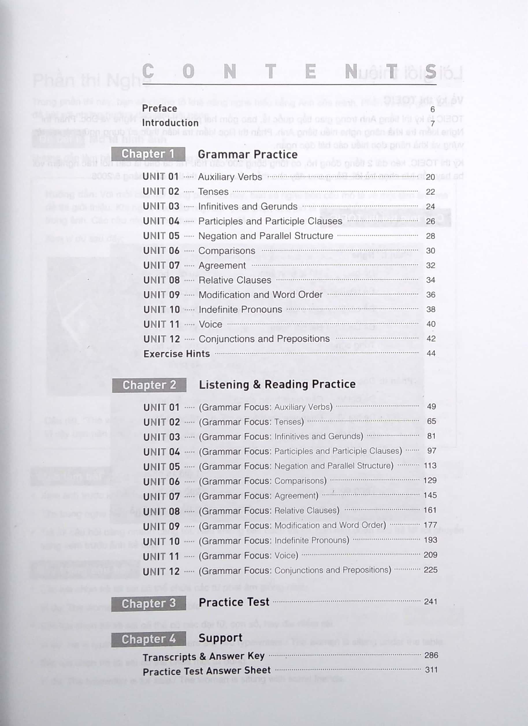 Chapter 01: Listening Comprehension - Part 1: Strategies - Part 2: Strategies - Part 3, 4: General Strategies - Part 3: Strategies - Part 4: Strategies Chapter 02: Reading Comprehension - Unit 01: Structural Understanding