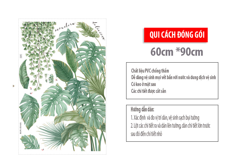 Giấy dán tường decal dán tường cây lá đẹp giá rẻ 2019 - WL105