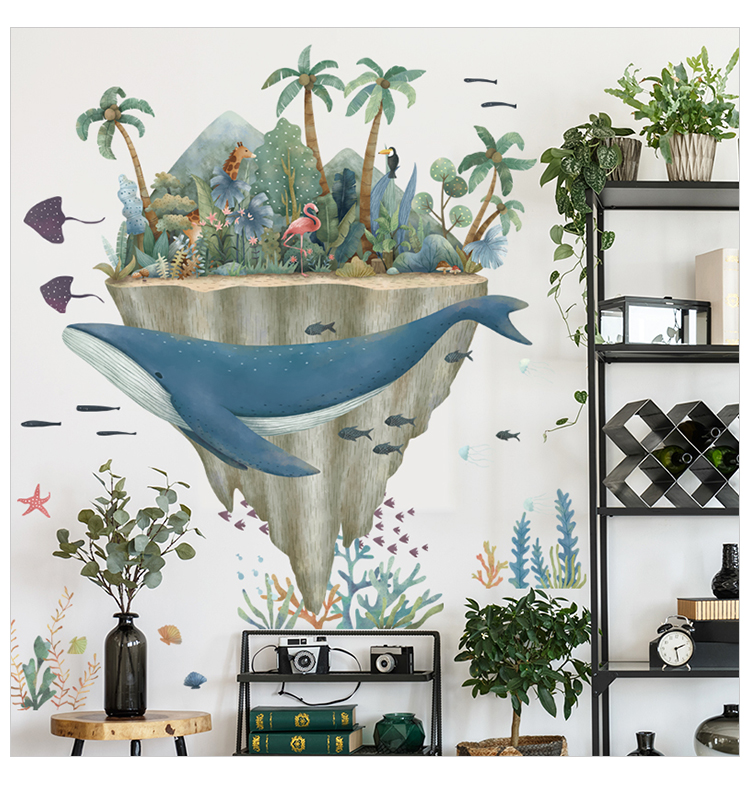 ✨Sticker Giấy Dán Tường Decal Dán tường Tranh Dán Tường Trang Trí Tường Mẫu Cá Voi Xanh Và Bán Đảo Sở Thú ZH-1018