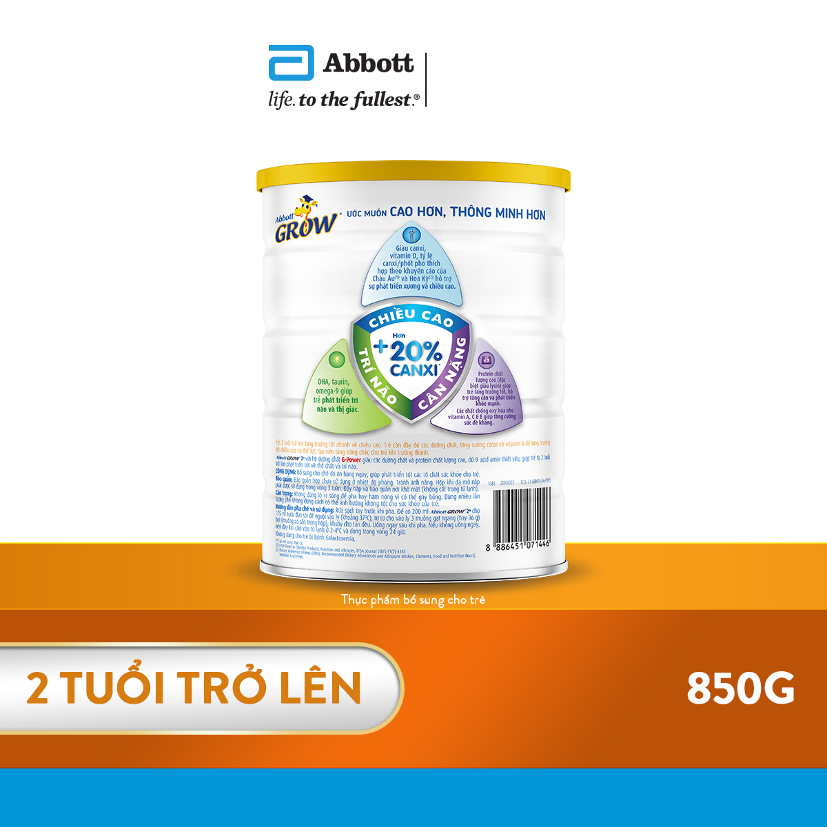 - Sữa bột Abbott Grow 2+ cho trẻ trên 2 tuổi. Thông tin dưới đây là thông tin trên nhãn sản phẩm đã được cơ quan có thẩm quyền phê duyệt.