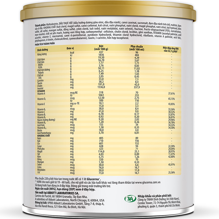 - Hệ bột đường tiên tiến, với chỉ số đường huyết thấp và được tiêu hóa từ từ giúp bình ổn đường huyết.