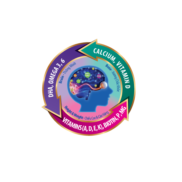 Sự kết hợp giữa các chất dinh dưỡng Protein, Vitamin A - D - E - K, VitaminB1 - B2 - B3 - B6 - B12, Axit Folic, Photpho và Magie giúp phát triển cân nặng và chiều cao tối ưu.