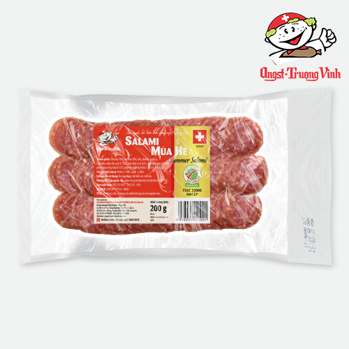 Summer Salami khô cắt lát 200g là sản phẩm được sản xuất từ nguồn nguyên liệu thịt heo, mỡ heo tươi ngon, được chọn lọc kỹ lưỡng, lên men tự nhiên theo công nghệ Thụy Sỹ. Summer Salami khô là món ăn thơm ngon, tiện lợi, cung cấp nhiều chất dinh dưỡng và là nguyên liệu hảo hạng để chế biến nhiều món ăn hấp dẫn khác nhau.