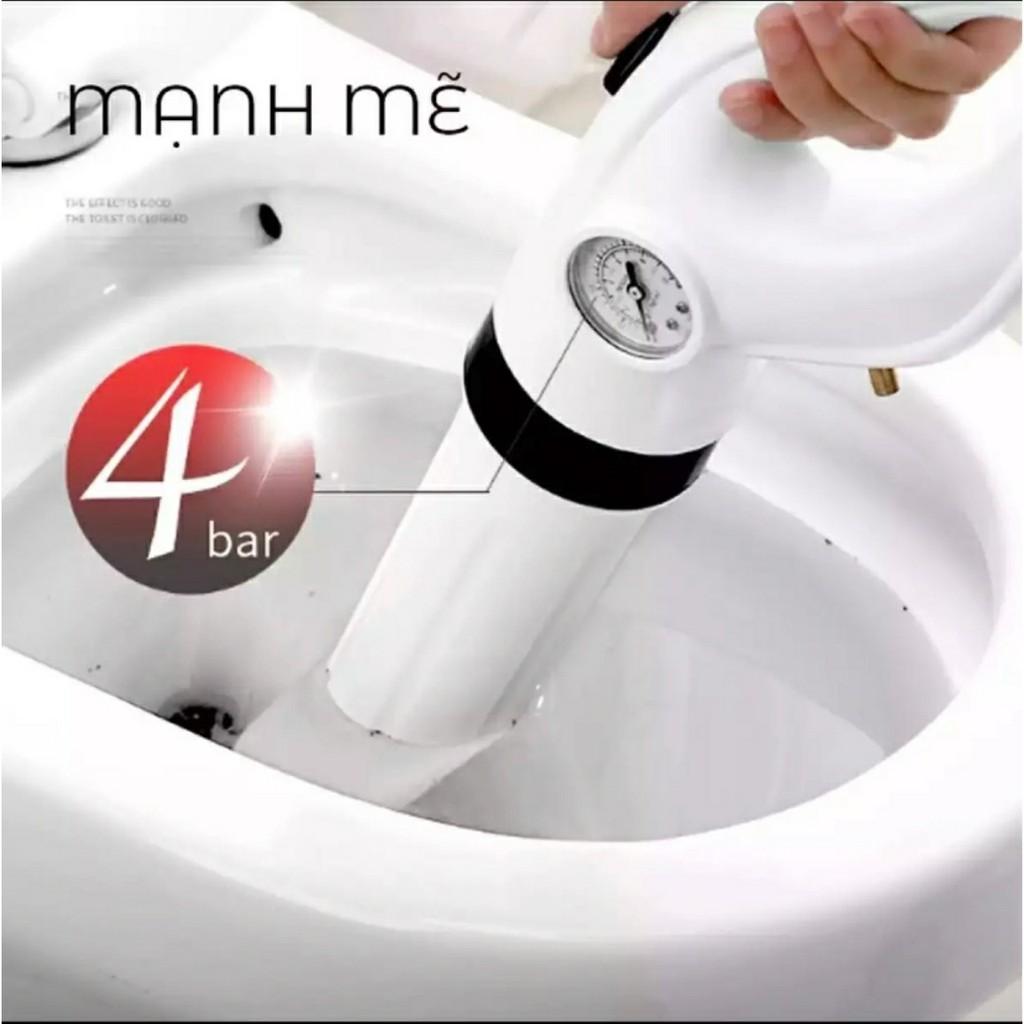 Dụng cụ thông bồn cầu toilet bị tắc nghẽn bằng ống hơi cực mạnh, có đồng hồ áp suất...