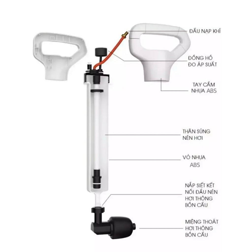 Súng Thông Tắc Bồn Cầu Sản Phẩm Cao Cấp Sử Dụng An Toàn Hiệu Quả - Bộ sản phẩm gồm: Súng nén áp lực, 4 đầu chụp, đầu nối. - Sản phẩm tạo lực đẩy
